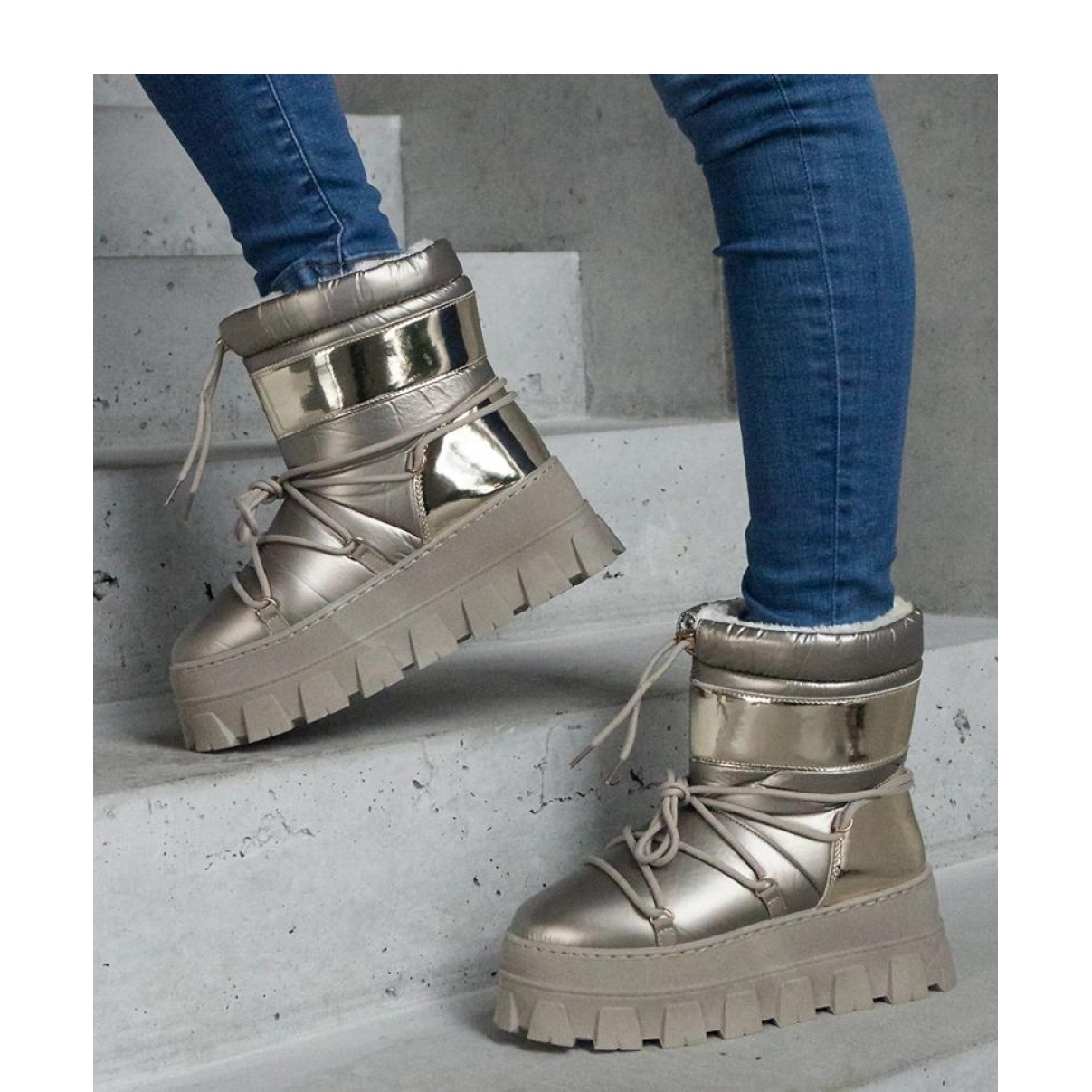 Golden snow boots on the platform with varnished Lost inserts from the Solea manufacturer is a must-have for every fashionable woman in the upcoming season. These spectacular shoes combine style, comfort and functionality, which makes them the perfect choice for winter days.
