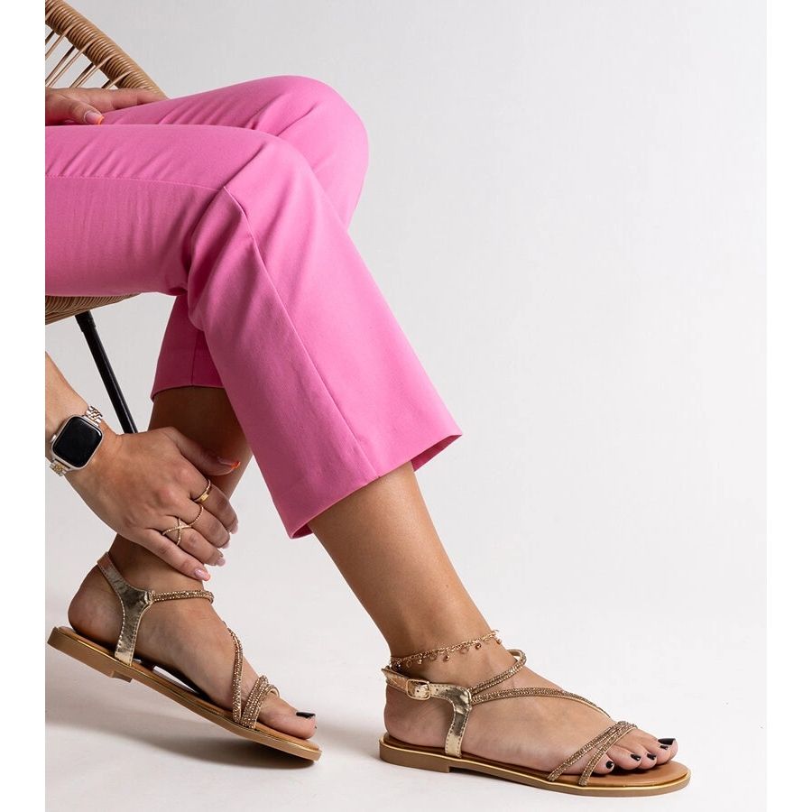 Inna marka Gold sandals decorated with Caramella zircons golden