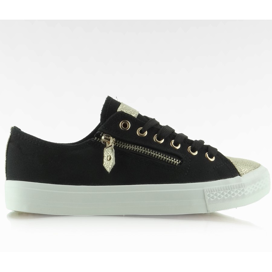 Sneakers with gold toes BL28P - black, low, always in fashion