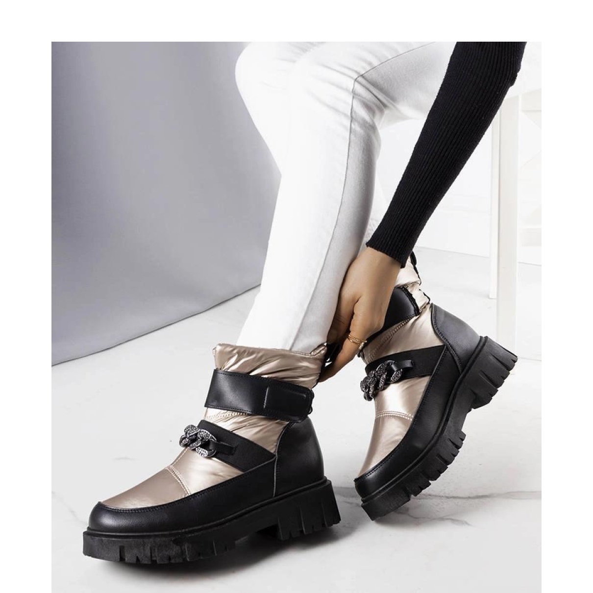 Golden snow boots with the Ephraim chain from the Solea brand is the perfect combination of style and functionality that will work during winter trips. Their upper, made of high quality ecological leather and waterproof material, provides not only an elegant look, but also protection against adverse weather conditions.