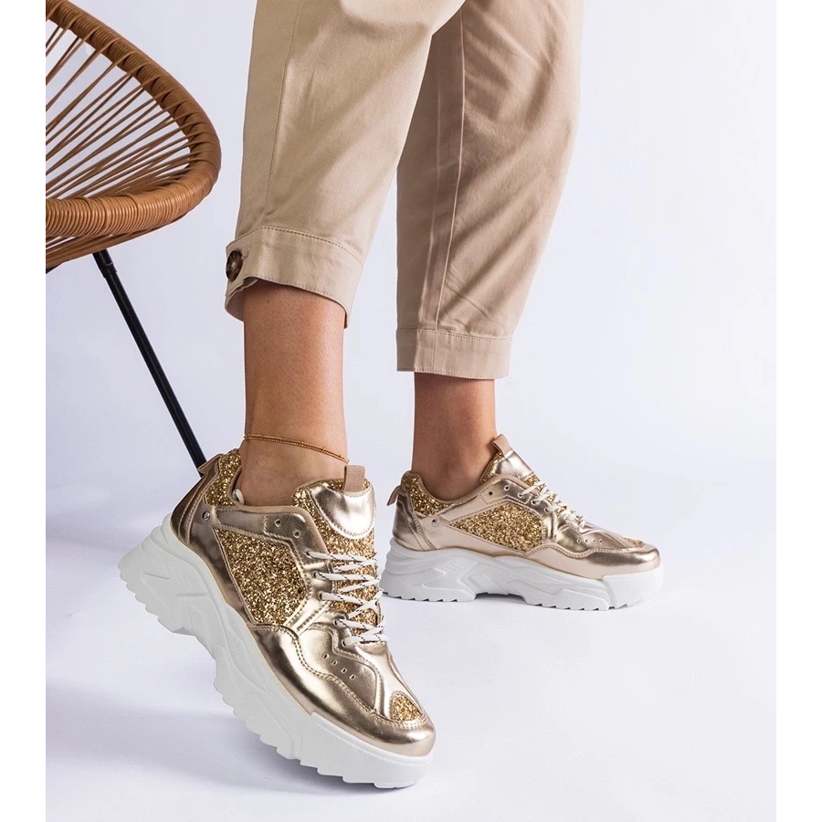 D/CEO D/CEO Gold women's sneakers with glitter Caraballo inserts golden