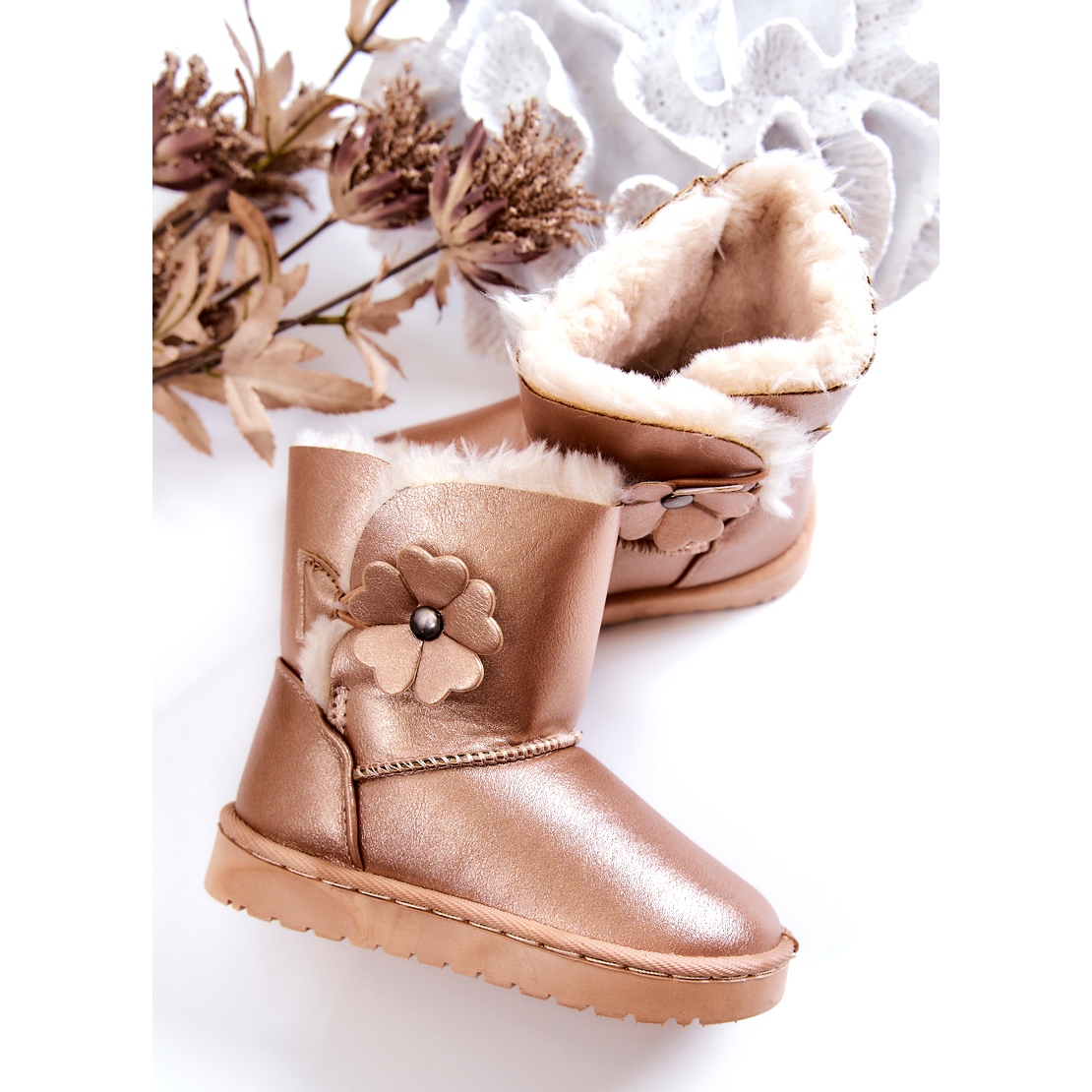 Details: FR1 Golden Bianca Children's Snow Boots With Flower