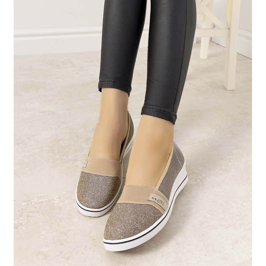Discover comfort and style with the Burris gold wedge sneakers! These fashionable shoes are a great choice for everyday wear, combining elegance with comfort. The slip-on design makes them quick and easy to put on, which is perfect when you're in a hurry. The low 4 cm wedge and soft rubber sole provide stability and cushioning when walking.