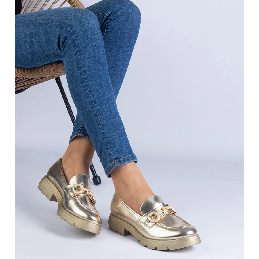 Details: Golden classic shoes with golden decoration