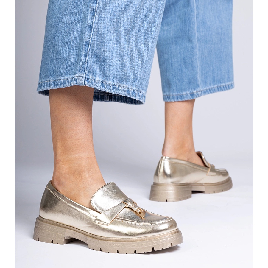 Inna marka Golden elegant loafers with eco -leather with decoration