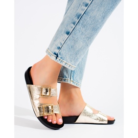 Details: Goodin Golden slippers with decorative buckles