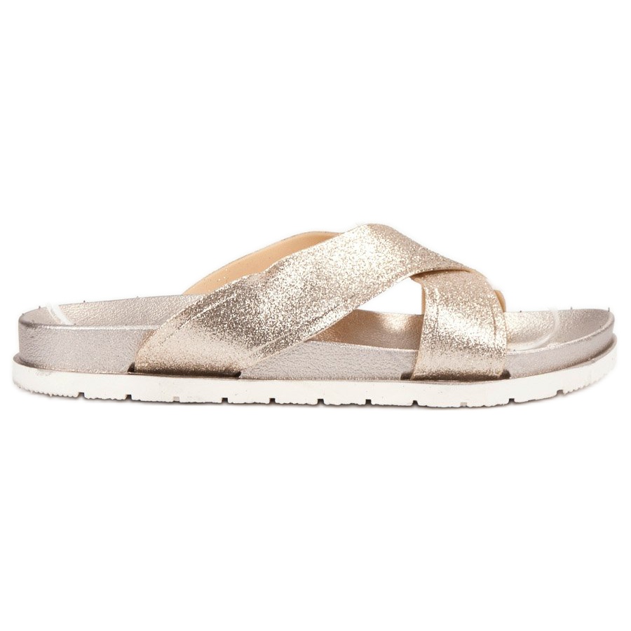 Discover comfort and elegance in the gold Emaks glitter flip-flops, which will perfectly complement any everyday style. These beautiful shoes stand out not only with their fashionable color, but also with their spectacular glitter finish, which beautifully shimmers in the sun, attracting the attention of the surroundings.
