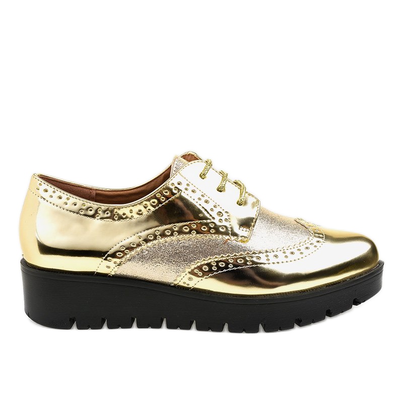 Discover a unique style with beautiful gold lace-up TL-60 half-boots. These elegant shoes, made of high-quality eco-leather, impress with their classic design and subtle 3.5 cm wedge, which adds lightness and elegance to every styling. The gold color attracts attention and is perfect for both everyday combinations and special occasions, such as parties or evening outings.