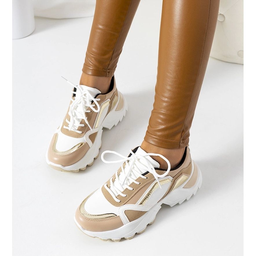 Stylish sneakers that should be in every wardrobe. The combination of beige and subtle metallic details gives them a modern character, and a thick white sole (platform height 5.5 cm) provides comfort throughout the day and a spectacular finish of the look. The upper made of ecological leather with eco-eco-shaped inserts looks elegant and easily goes together with various stylizations-from jeans to summer dresses.