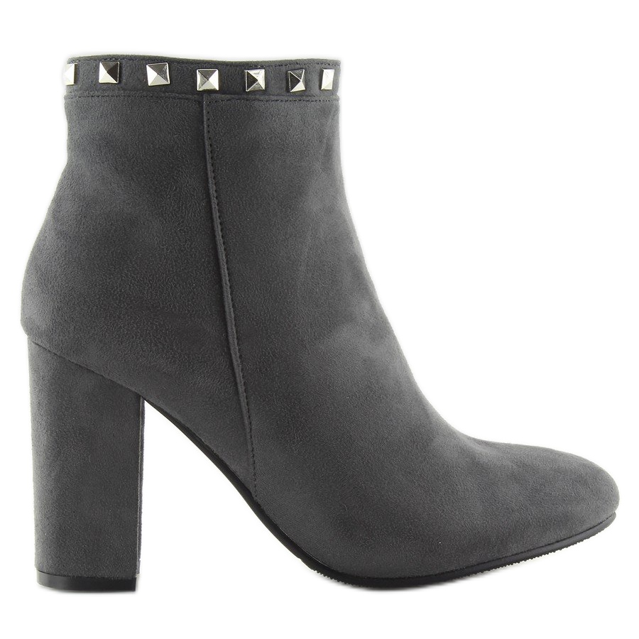 Discover unique high-heeled ankle boots with studs in an elegant shade of grey, which will be the perfect complement to your wardrobe! These classic women's ankle boots combine style and comfort, and the stable 9 cm block heel will allow you to enjoy comfort even during a long day.