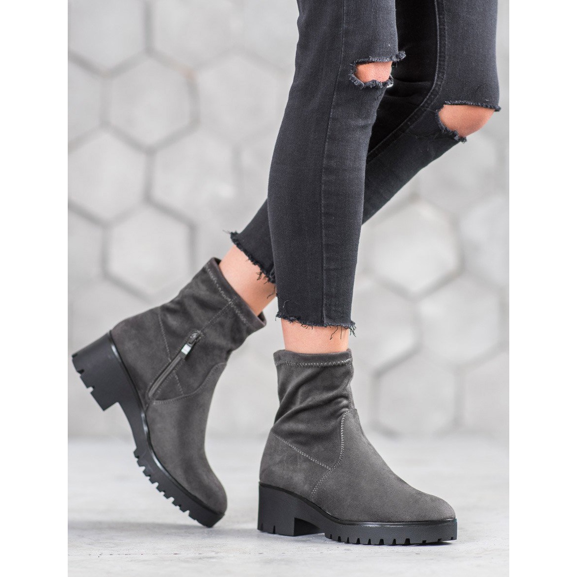Add a touch of style and comfort to your wardrobe with the SHELOVET ankle boots in grey. These fashionable and practical women's shoes are made of high-quality ecological suede, which makes them not only aesthetically pleasing but also environmentally friendly. Thanks to the solid sole with tread, you can enjoy comfort and stability while walking.