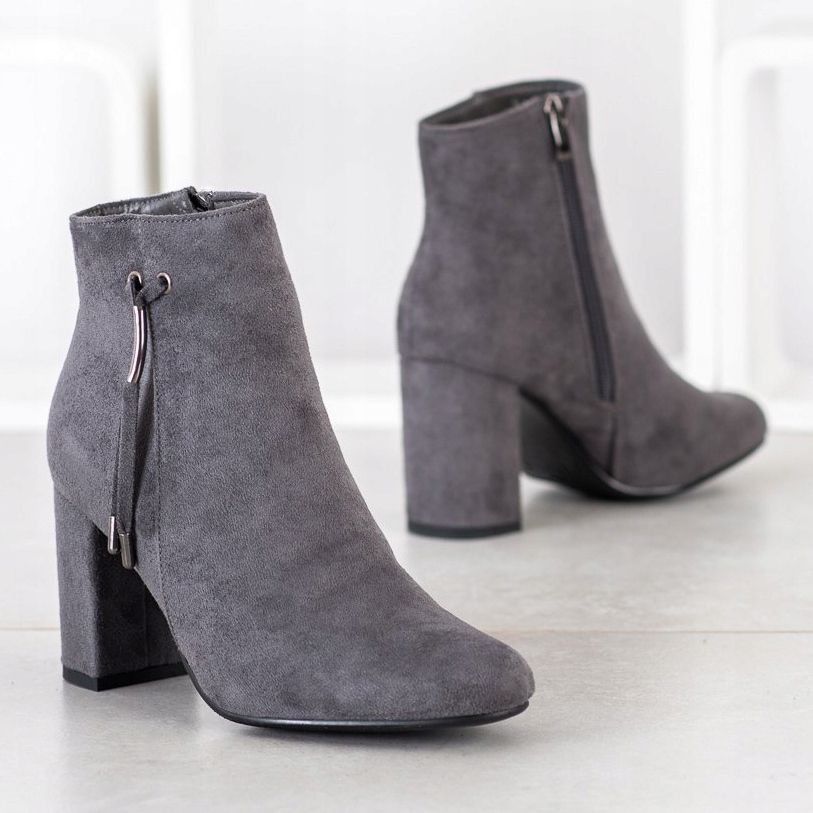 We present elegant gray Goodin ankle boots with fringes, which will be a perfect complement to any woman's wardrobe. Made of high-quality ecological suede leather, these ankle boots combine casual and elegant style, perfect for various occasions.
