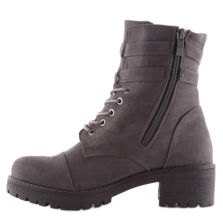 Worker Suede Ankle Boots in the shade of grey TS10 Grey are the perfect choice for every woman who values a combination of comfort and fashionable style. These elegant ankle boots on a solid sole with a tread guarantee stability and comfort of wearing, and an additional element in the form of a delicate silver piping gives them a unique character.