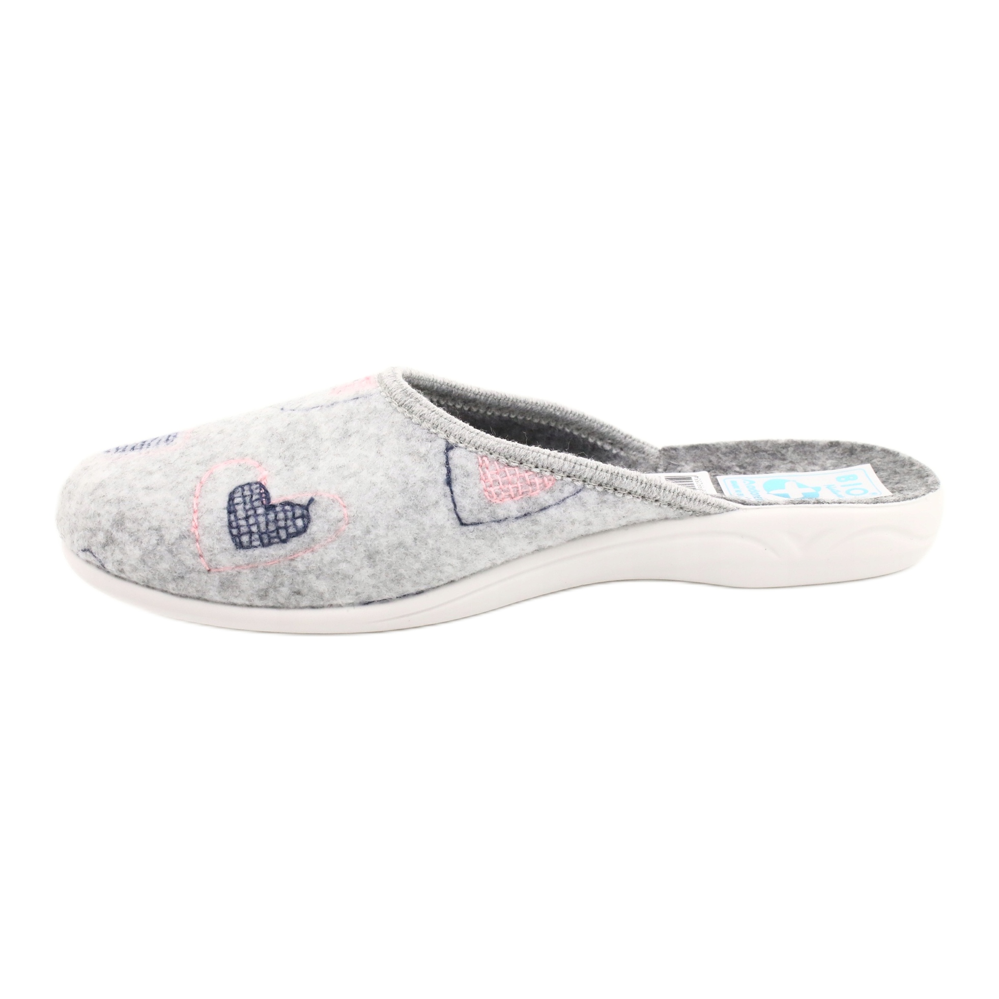 Details: Gray Felt Slippers hearts Adanex 19255 gray pink grey