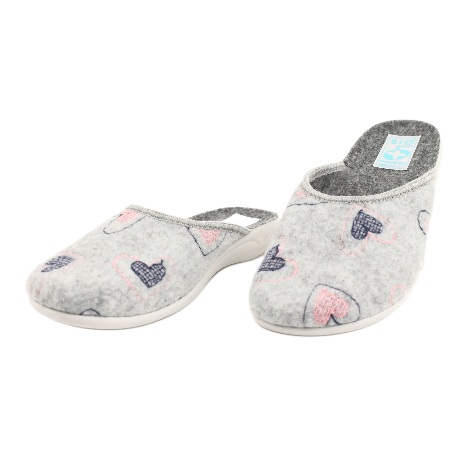 Adanex Gray Felt Slippers hearts Adanex 19255 gray pink grey