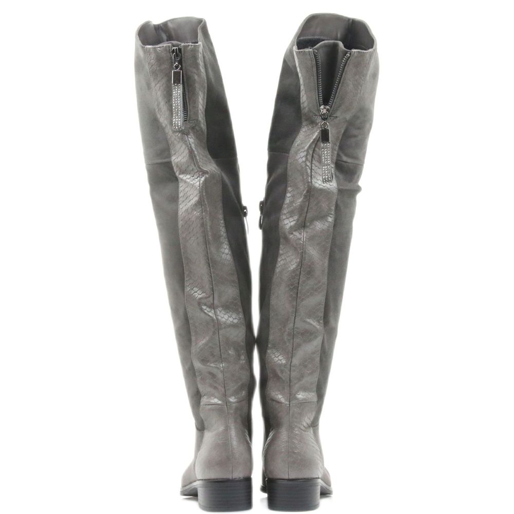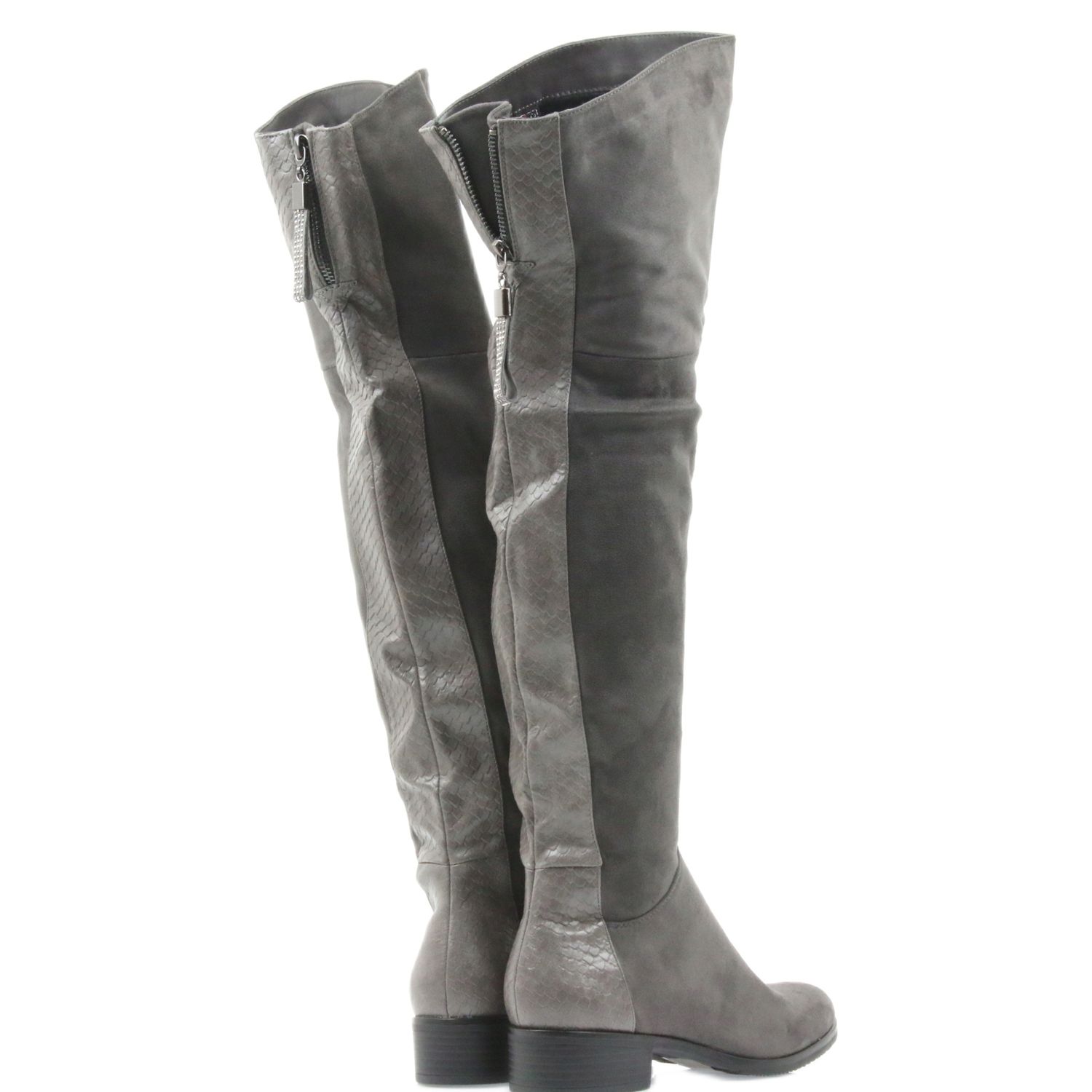 The Filippo 379 over-the-knee boots in grey are the perfect choice for women who value style and comfort. Made of high-quality suede eco-leather, these boots look elegant and functional at the same time. The back of the upper is decorated with a unique synthetic insert that imitates snake scales, adding character to the footwear.