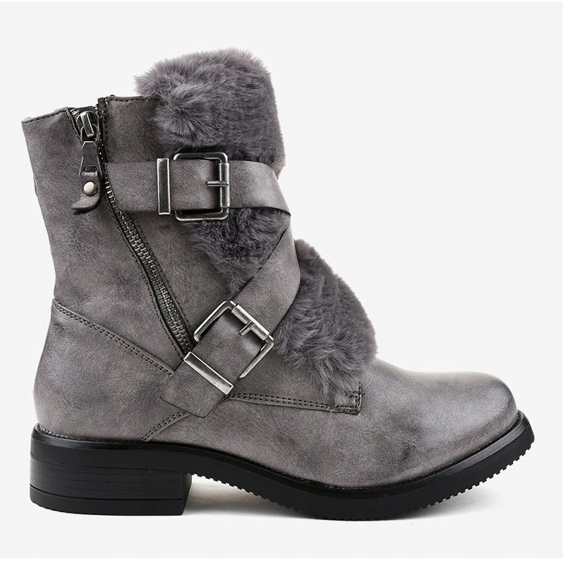Inna marka Gray flat boots with fur 1061A-PA grey