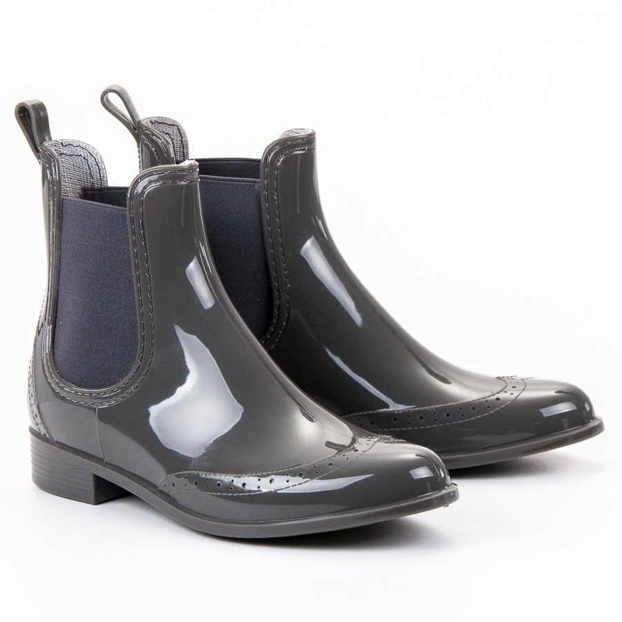 Discover the perfect wellies for cold, rainy days - gray Kayla pull-on wellies that combine comfort and style. Thanks to the rubber inserts on the sides, putting them on is a pure pleasure. A small 2.5 cm heel and a profiled sole make them extremely comfortable, while adding a subtle character to any styling.