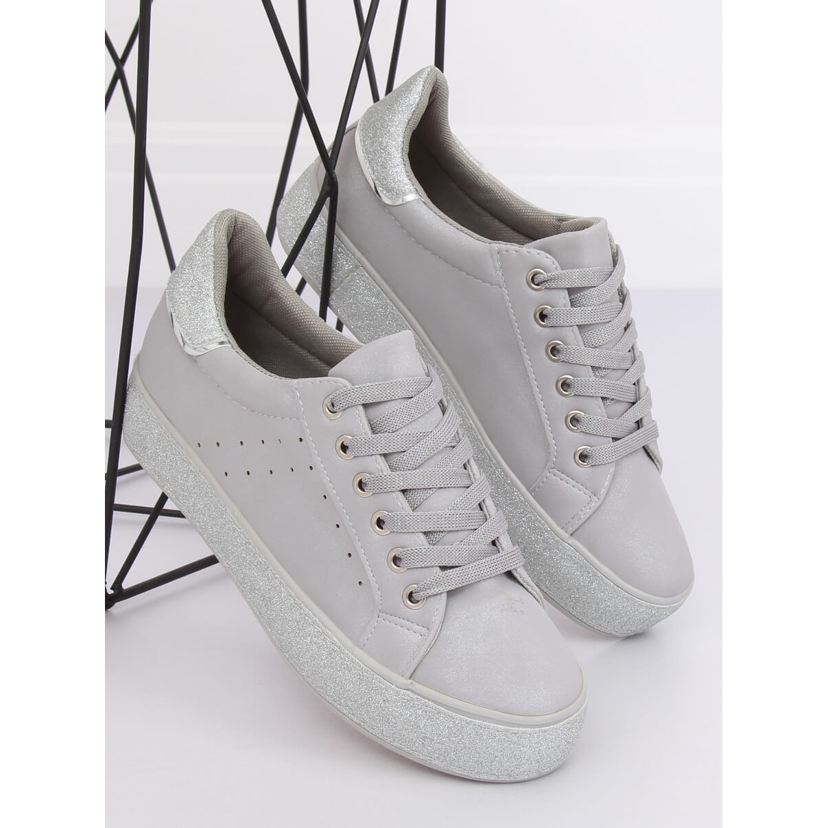 Discover exceptional elegance and comfort with the R249 Grey women's sneakers. These beautiful, lace-up sneakers are the perfect choice for women who want to combine a fashionable look with everyday comfort. Their unique design with glitter inserts will make you stand out from the crowd, adding shine to any styling.