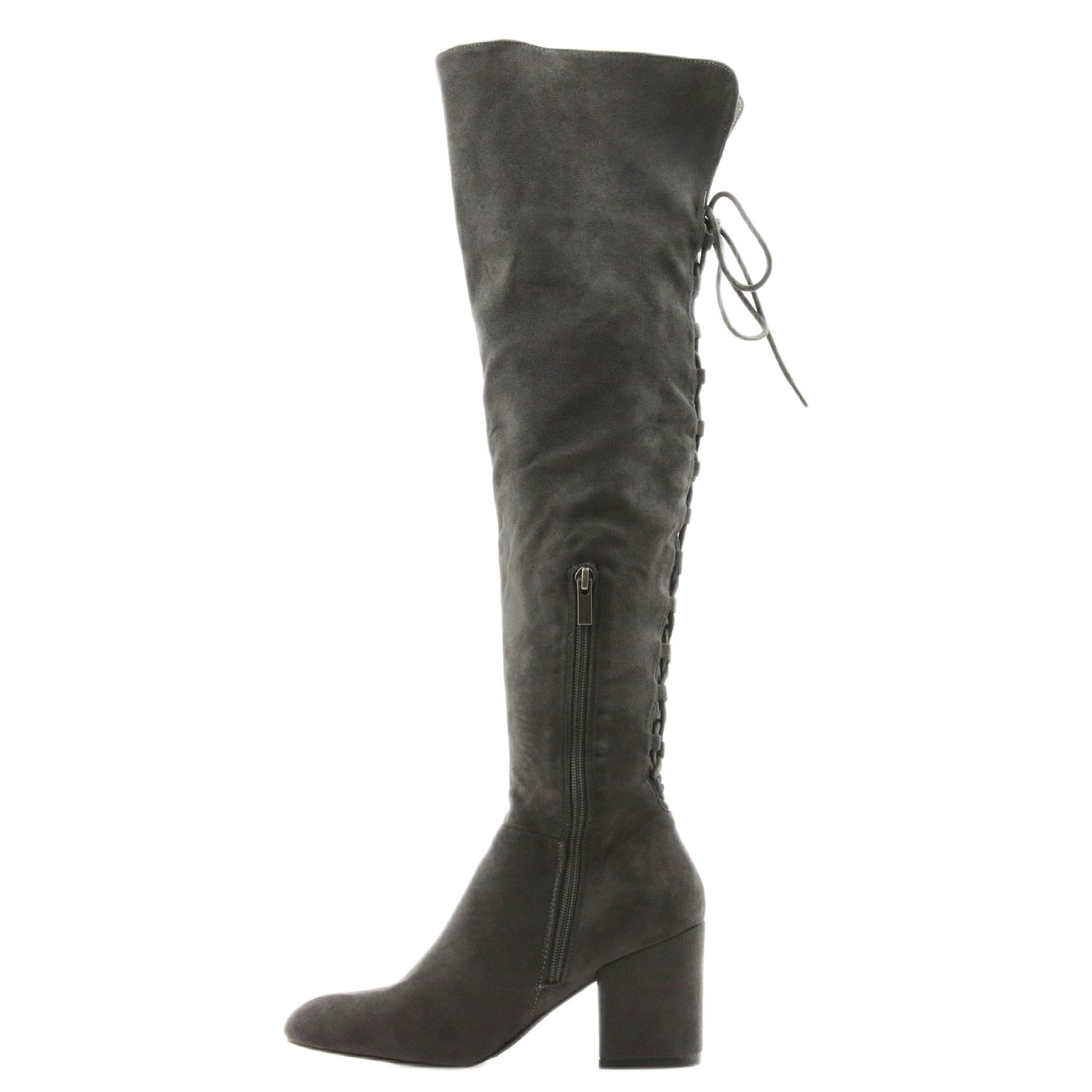 The Big Star 274519 gray high-heeled boots are a great choice for women who want to combine elegance with comfort. Made of high-quality ecological material, their suede look gives them a stylish character, and the upper with a height of 52 cm and a width of 34 cm perfectly adapts to the figure. The interior insulation in the form of foam and textile material means that these shoes guarantee warmth on cold days.
