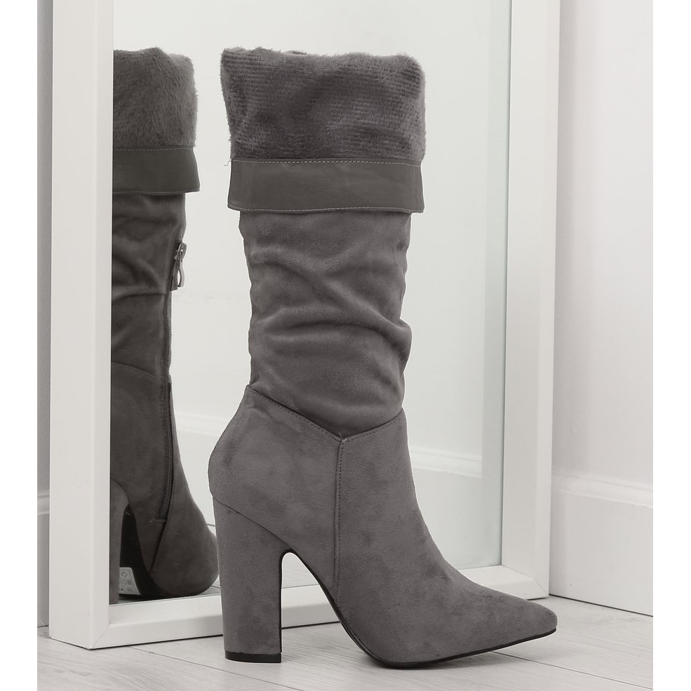 Inna marka Gray high-heeled boots SY48P Gray grey