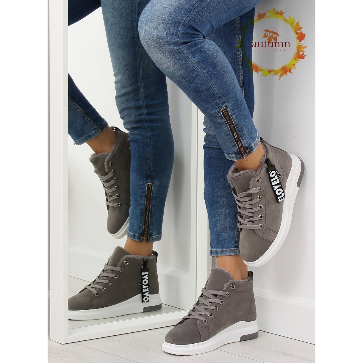 Are you looking for unique shoes that will accompany you on cold days? Insulated gray sneakers 2018-67 gray is a choice you will certainly not regret!
