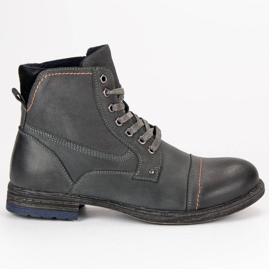 High, lace-up ankle boots in a universal gray color - a combination of classic style and a practical, casual character. Made of high-quality natural leather, designed for comfort and protection on colder days of the fall and winter season.