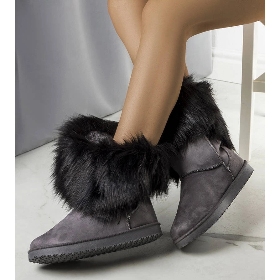 Kynlee gray snow boots are a proposal for all the colds who do not want to give up comfort or fashionable appearance. A classic, round nose, suede eco -leather outside and a fluffy fur inside ensure thermal comfort and a pleasant feeling of softness at every step. The zippered model makes it easier to put on, and the flat platform adds stability.