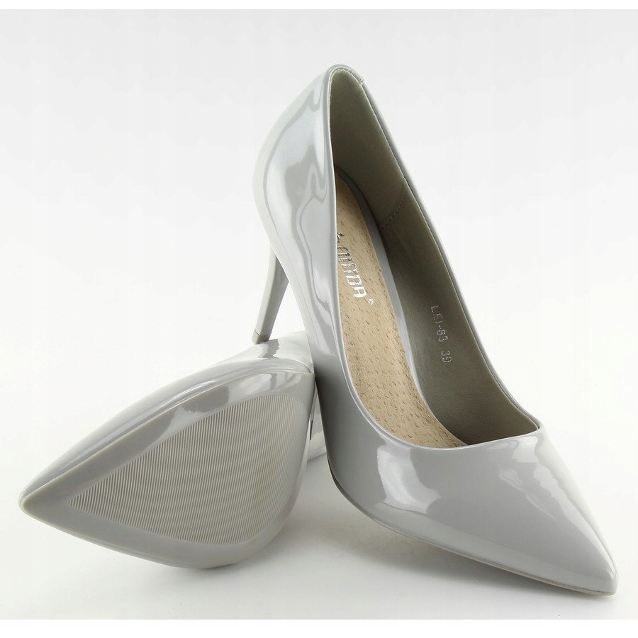 Inna marka Gray lacquered women's pumps LEI-83 Gray grey