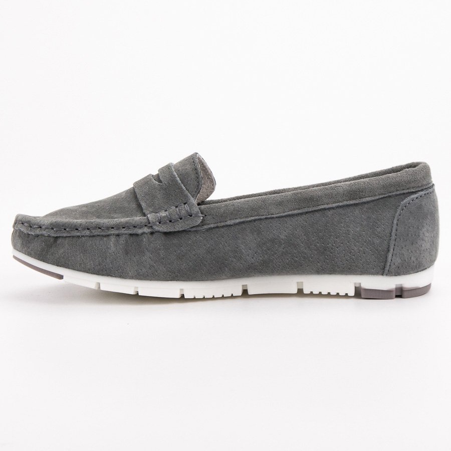 The white sole is a fashionable accent that distinguishes this model from others, adding freshness and lightness to each style. Moccasins are perfect for summer trips, shopping or school. Thanks to the universal gray color, they match many different styles - both urban and sports.