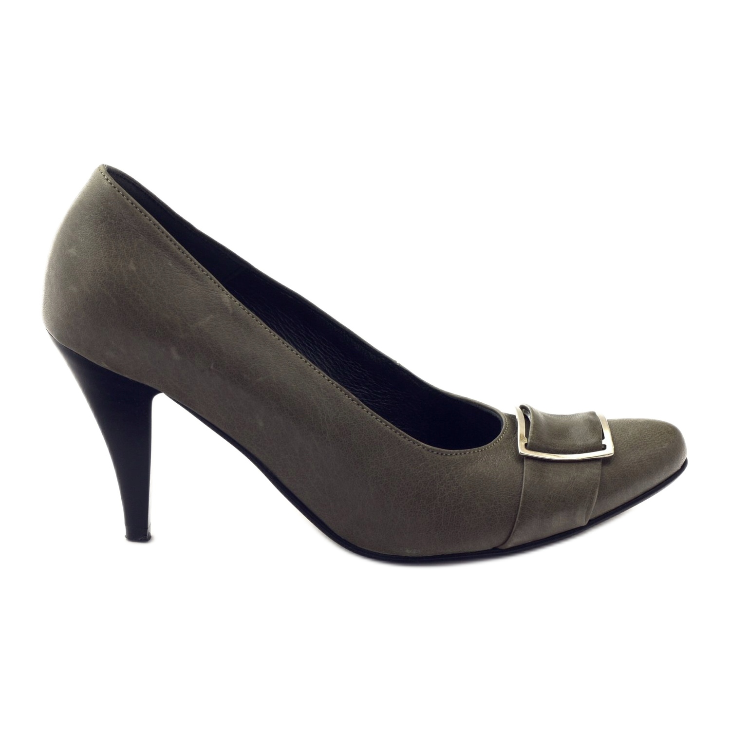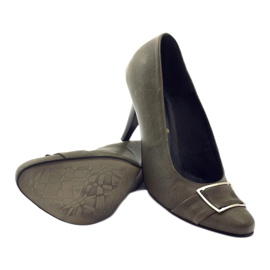 The pumps available in our store's offer are made with the highest precision of high-quality natural leather. The depth of brown and the delicate adornment in the form of a buckle above the toe make the shoes a perfect match for a variety of styles. The average height of the heel (7 cm) will allow you to comfortably use the footwear for many hours - both in professional and occasional situations.