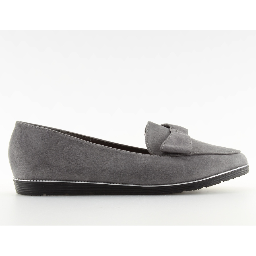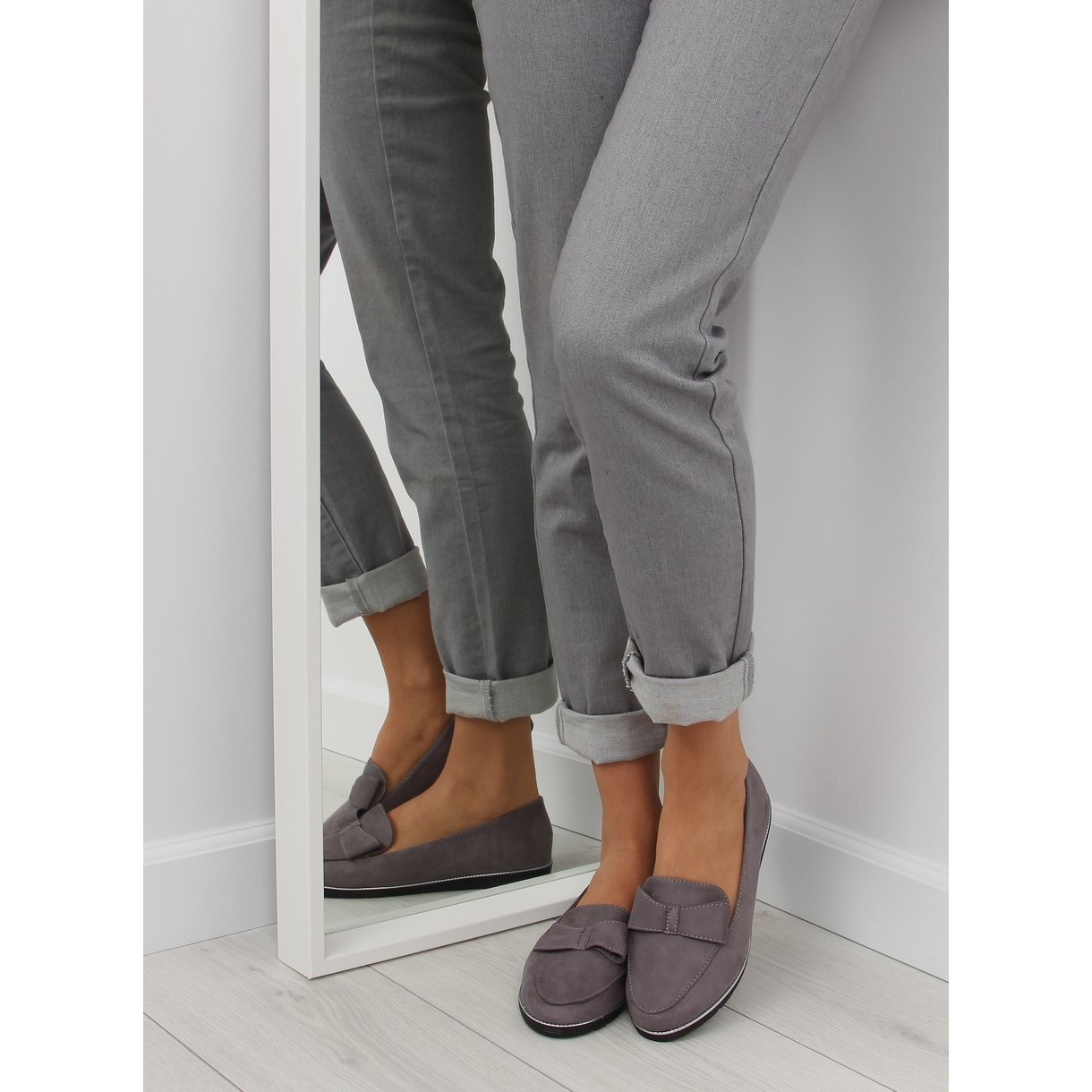 Women's gray loafers 127-2 gray are the perfect combination of style and comfort that will surely appeal to every fashionable woman. These elegant shoes are distinguished by a beautiful bow and decorative silver piping that runs along the sole, giving them a unique character.