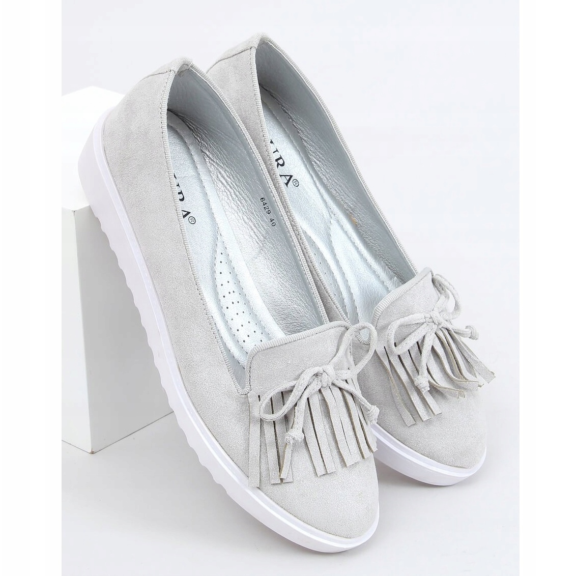 Inna marka Gray loafers with fringes 6429 Gray grey