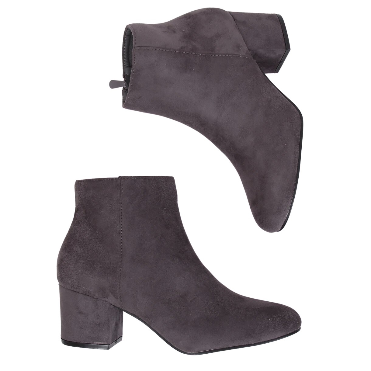 Low heel ankle boots YQ216P Grey are the perfect choice for every woman who values comfort and style in everyday styling. Made of ecological suede, these shoes not only look good, but are also environmentally friendly. Their classic design makes them a great match for various sets, both casual and more elegant.
