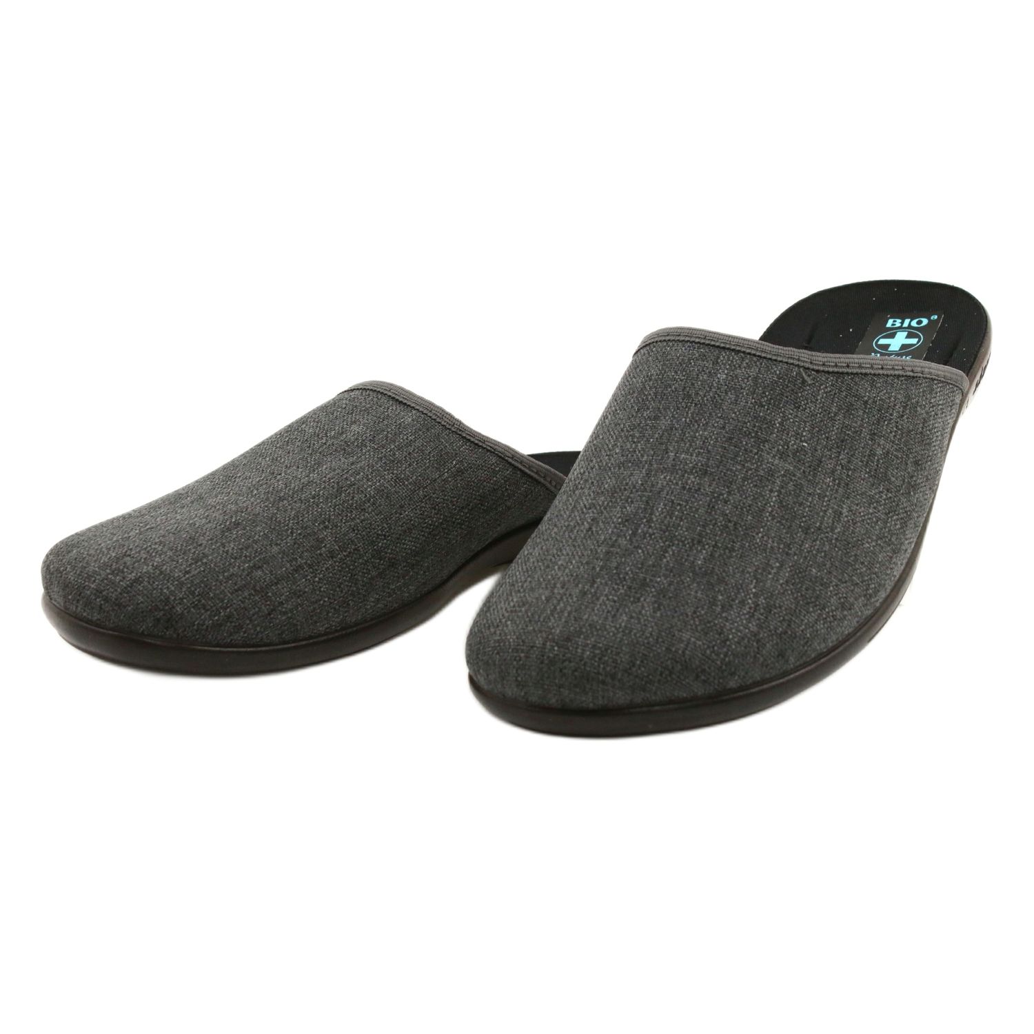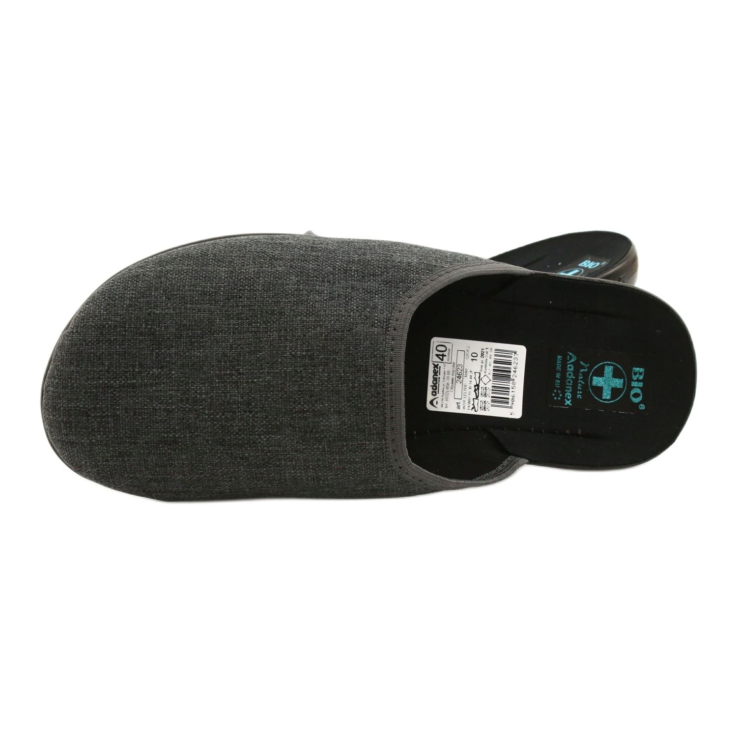 Classic, elegant Adanex men's slippers from the BIO Nature collection, model 24623. Made of high quality fabric with a linen structure in a subdued shade of gray, with a black PU sole. Perfect for home - light, airy and comfortable in everyday use.
