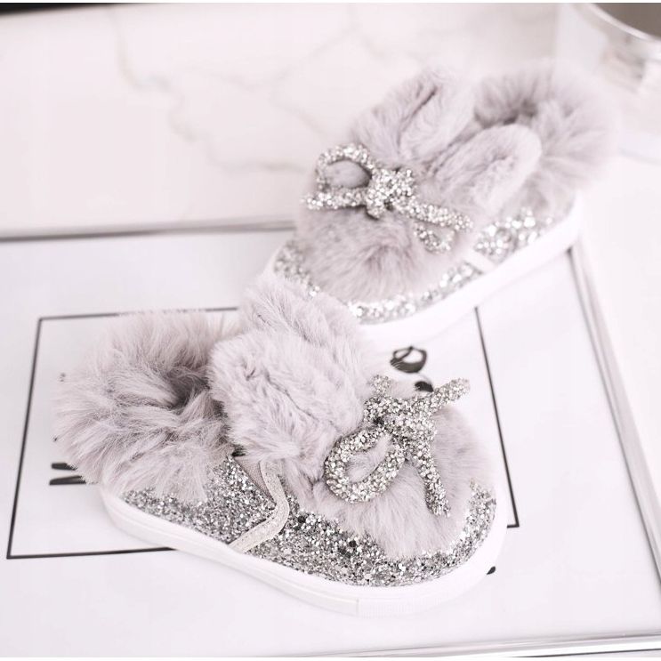Discover the world of fashionable and comfortable FRROCK children's sneakers! These warm, gray shoes with a glitter toe and cute ears are the perfect choice for little fashionistas who value both style and comfort.