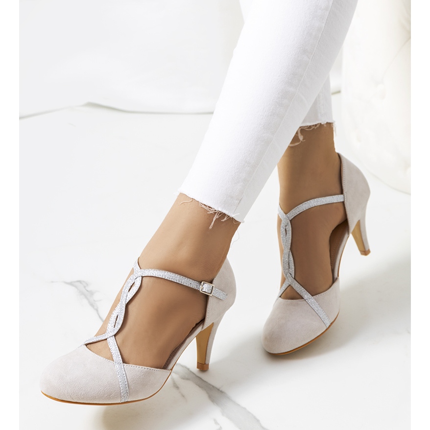 Luiken pumps stand out with a charming braided strap pattern and a subtle glitter shine that attracts attention. The decorative strap will provide additional stability, so you can enjoy every step. Remember that the numbering is lower, so we recommend choosing a larger size.