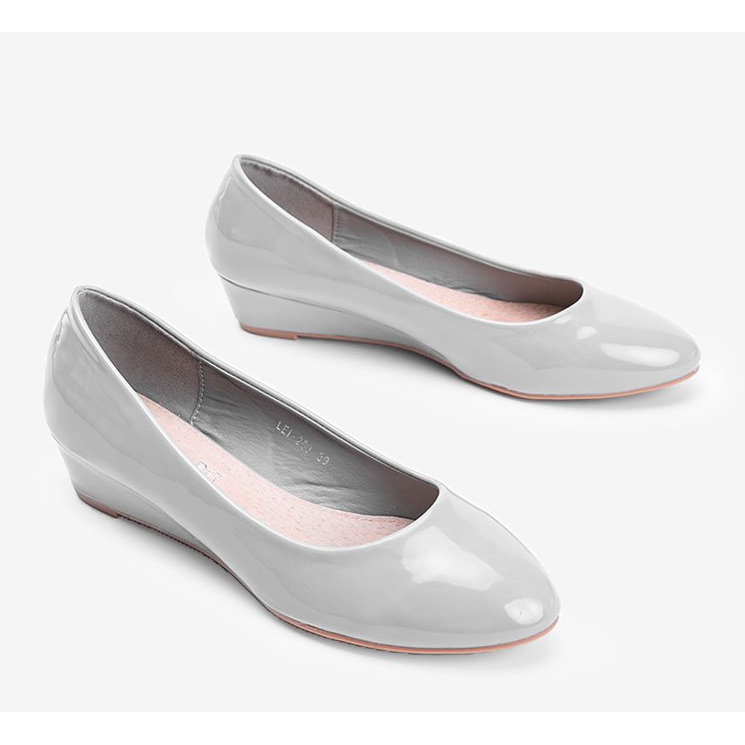 Discover elegance and comfort in one of the latest models of pumps - Chantal. These gray pumps with a low wedge are the perfect choice for women who want to combine style with functionality. Made of high-quality patent eco-leather, they look extremely tasteful and will certainly become a favorite element of your wardrobe.