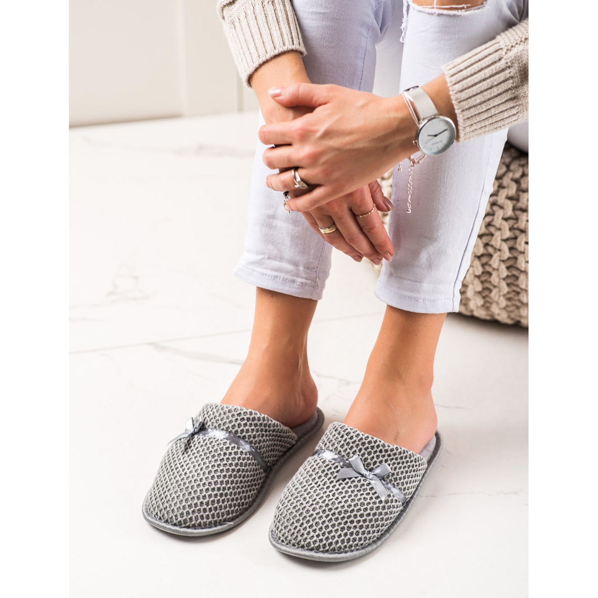 TRENDI TRENDI Gray Slippers With A Bow silver grey