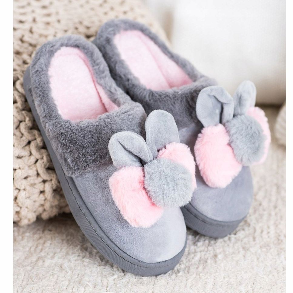 We present gray slippers with ears in pink from the renowned manufacturer Bona. This is the perfect choice for women who value comfort and style every day. The slippers are distinguished by a low platform of 3 cm, which ensures comfort when worn, and the round toe adds a subtle character.