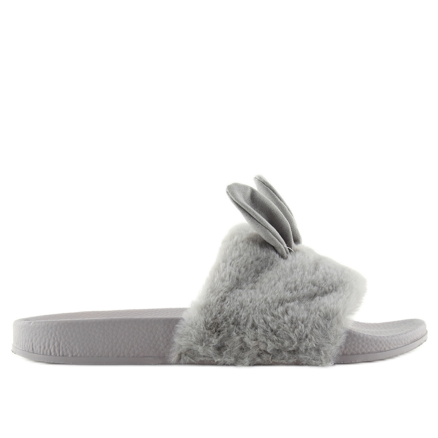 Details: Gray Slippers With Fur And Damaged Gray 58-21 grey