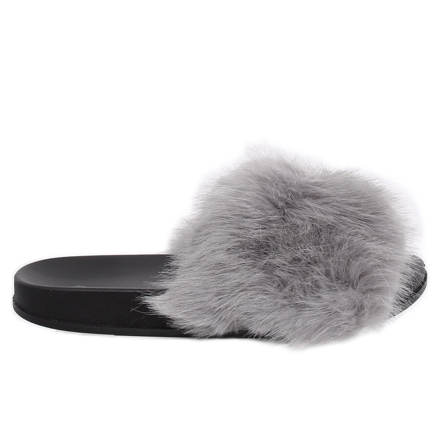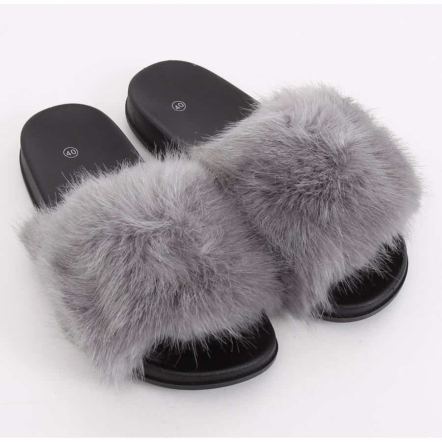 Inna marka Gray Slippers with fur CK107P Gray grey