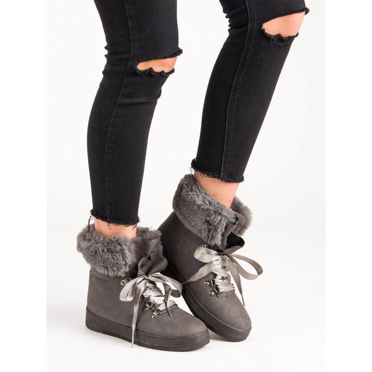 Details: Gray Snow Boots With Fur grey