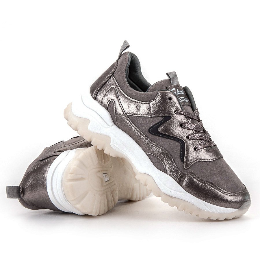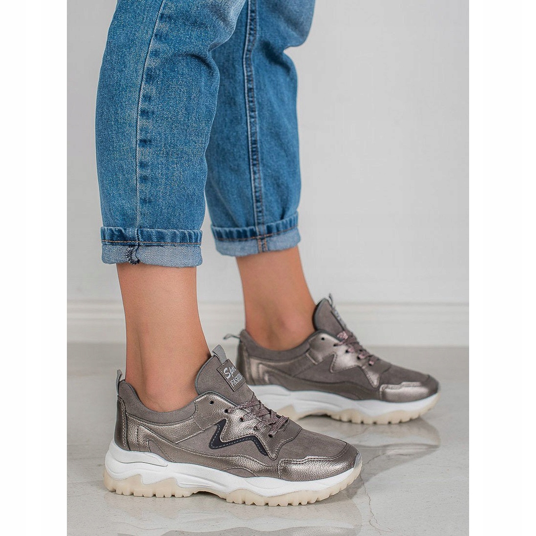 The shoes are made of high-quality materials, which guarantees not only an attractive appearance, but also durability. Their gray color is a universal proposition that can easily fit into various styles. Additional metallic accents and a glitter pattern give them a fashionable and modern character.