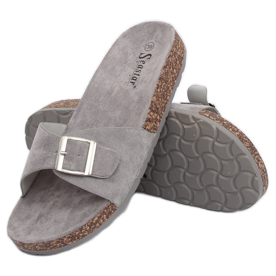 Inna marka Gray Suede gray slippers CK61P Gray grey