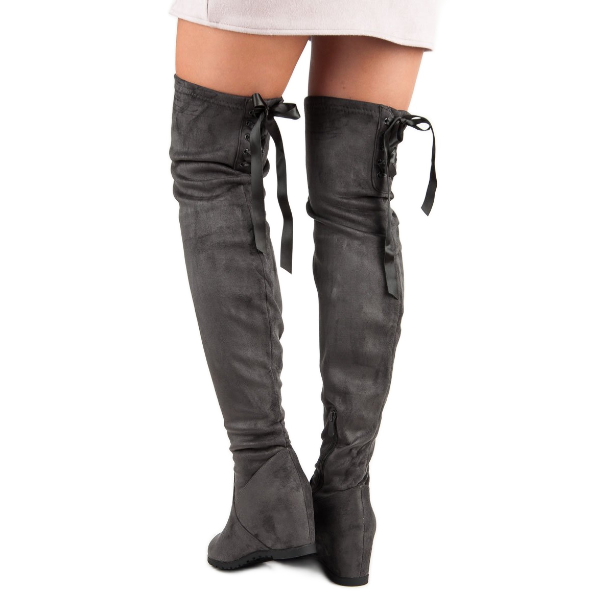 Bestelle Bestelle Gray thigh-high boots on a wedge grey