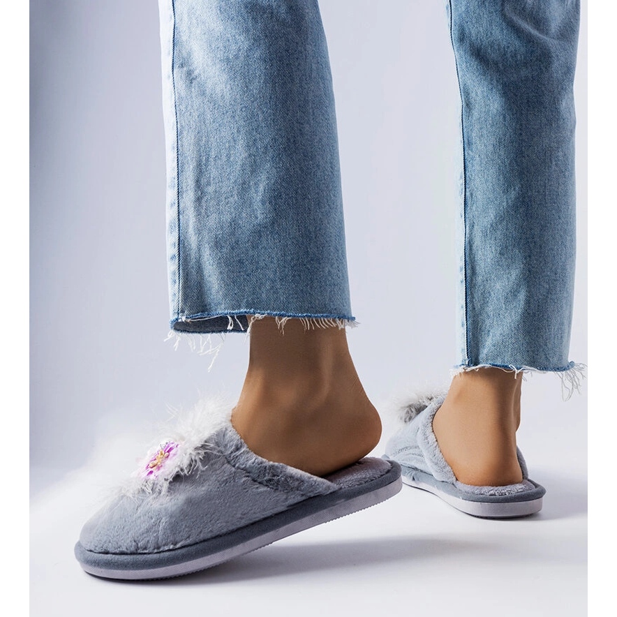 Details: Gray warm slippers with Moly flowers grey