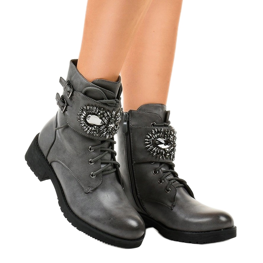 Details: Gray women's boots with a buckle and diamonds 0-251 grey