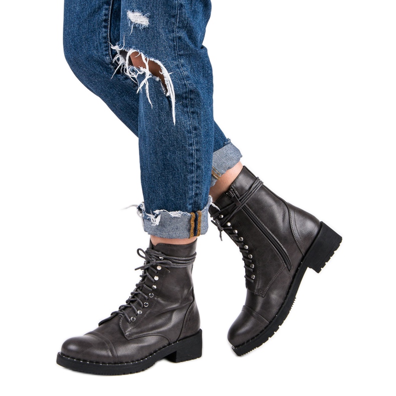 These grey work boots go perfectly with a variety of styles – from casual to more elegant. Additionally, their round toe and lace-up closure with a zipper ensure ease of putting them on and adjusting to any foot. Thanks to the flat heel, you can enjoy comfort all day long without giving up a fashionable look.