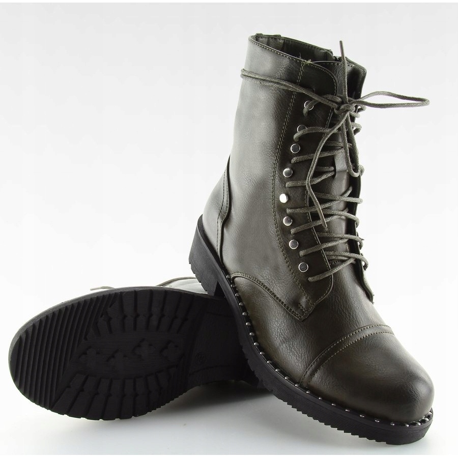 Discover bold style and comfort of wearing with the green B0-193 Green combat boots. These spectacular women's boots combine classic design with modern accents, perfectly matching current fashion trends. Traditional lacing, which is interwoven with silver rhinestones, gives them a rock character, and a solid sole with a tread ensures comfort for every day.